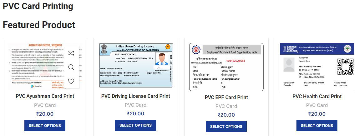 No matter you are looking for PVC Ayushman card print, driving license card print, EPF card print, health card print, PAN Card print or voter card print, look no further. PVC Print Store is your most reliable choice for PVC printing services. Get PVC ID card print here today!